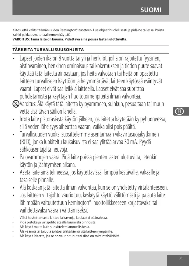 KÄYTTÖOHJE 9880 REMINGTON