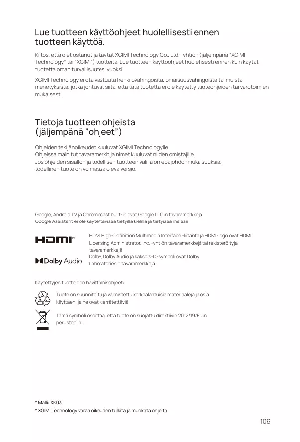 KÄYTTÖOHJE MOGO XGIMI
