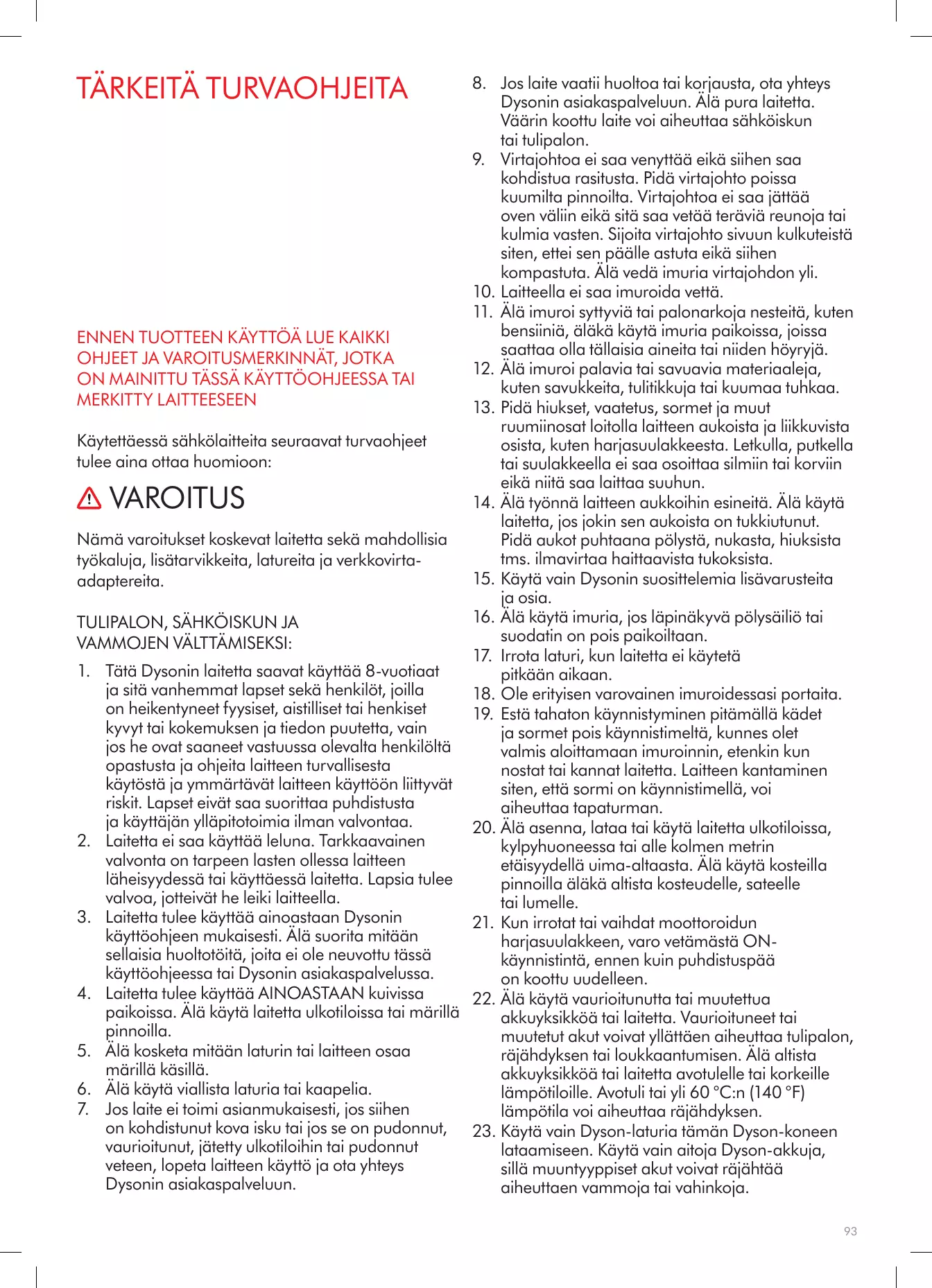 LISEZ ATTENTIVEMENT CES CONSIGNES ET CONSERVEZ-LES Cet appareil Dyson est exclusivement destiné à un usage domestique.