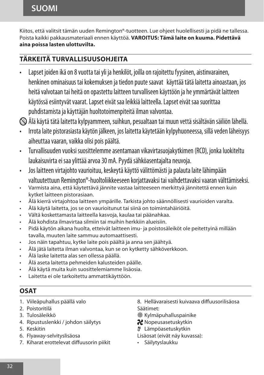 Téléchargez la notice de votre Hiustenkuivain au format PDF gratuitement ! Retrouvez votre notice D6077 - REMINGTON et reprennez votre appareil électronique en main. Sur cette page sont publiés tous les documents nécessaires à l'utilisation de votre appareil D6077 de la marque REMINGTON.