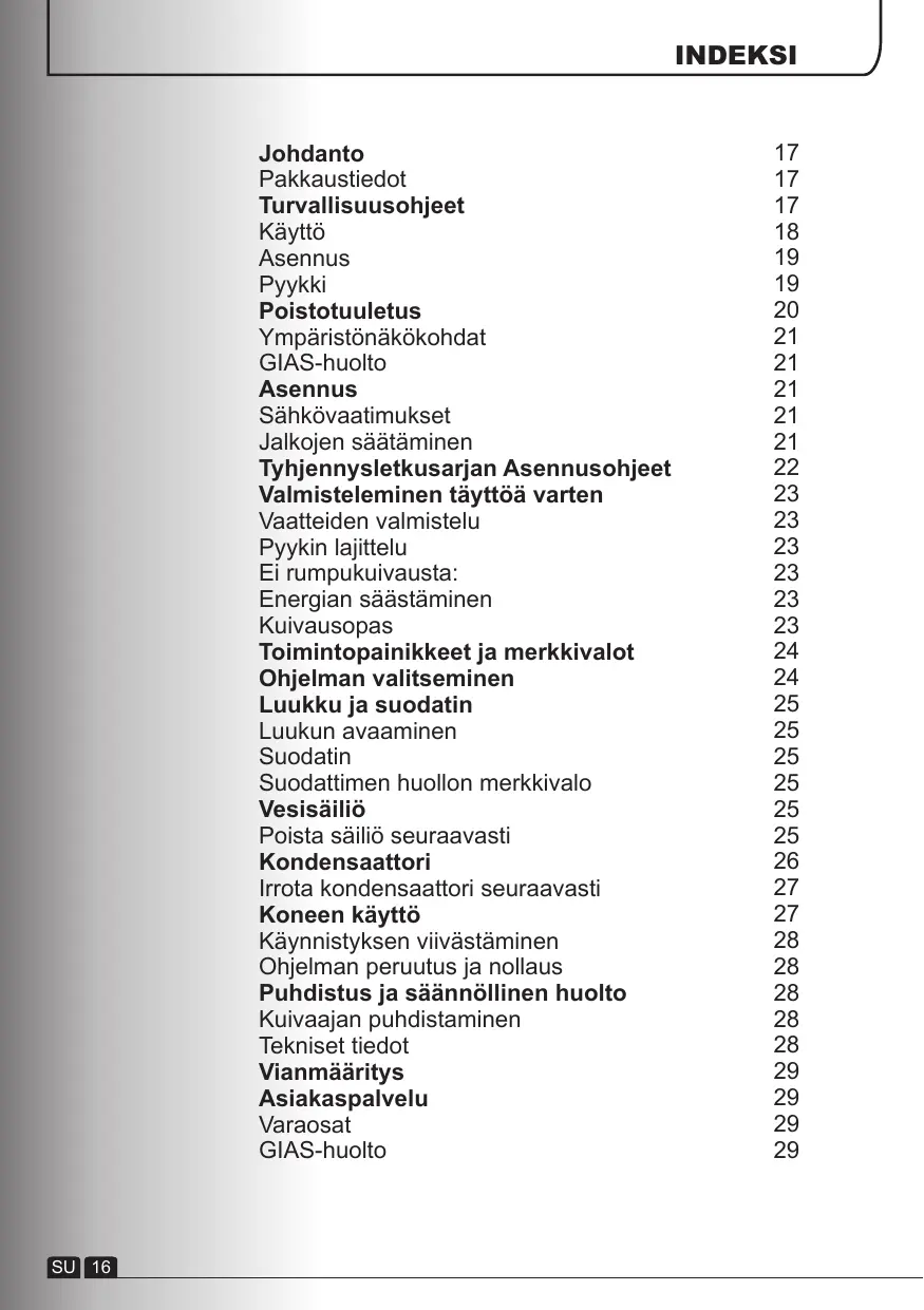 - Tämä kone on tarkoitettu vain kotikäytössä tapahtuvaan tekstiillien ja vaatteiden kuivaamiseen.