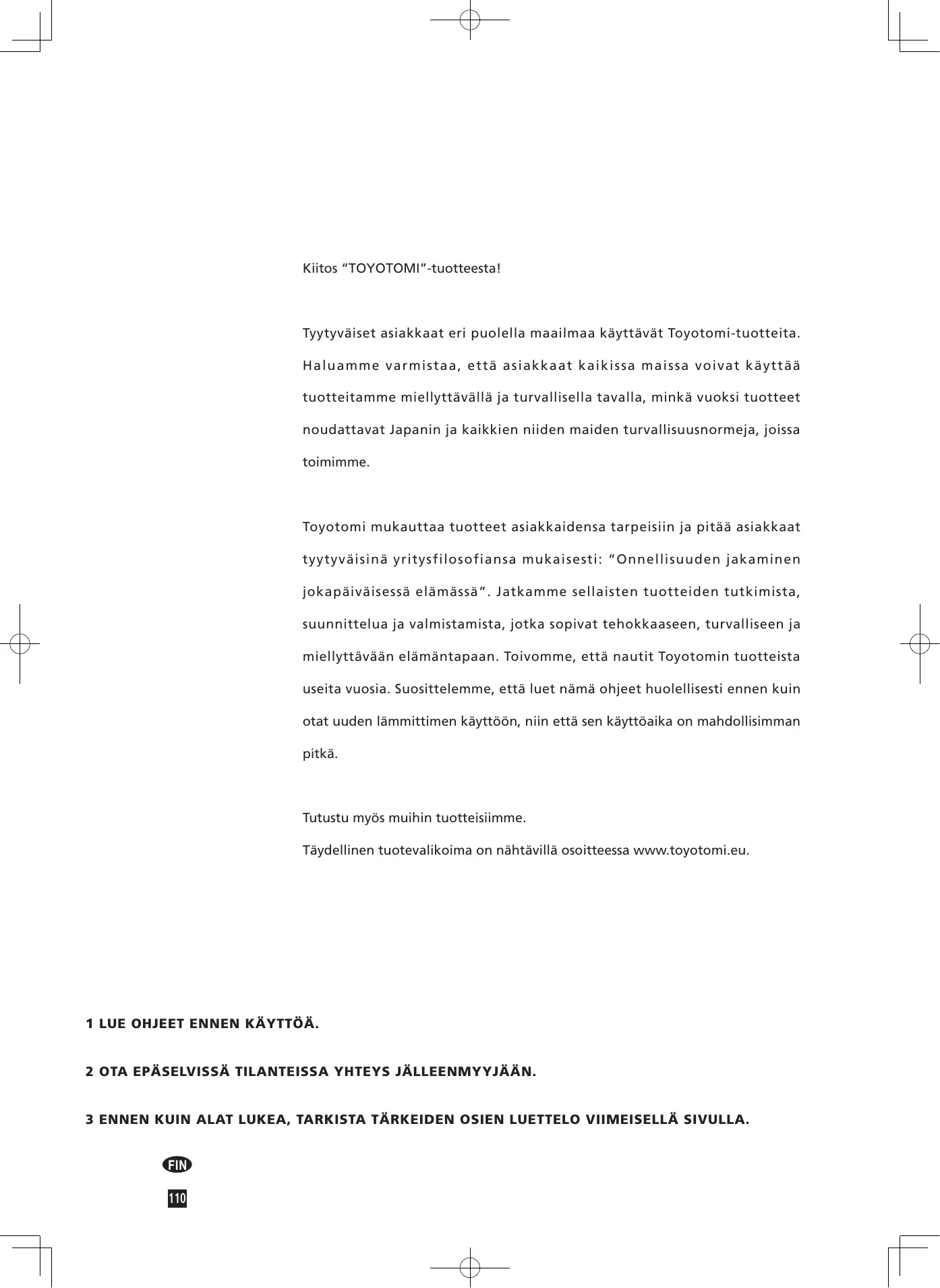 Apprenez à mieux nous connaître ... rendez-vous sur notre site www.toyotomi.eu pour une vue d’ ensemble de notre gamme de produits.
