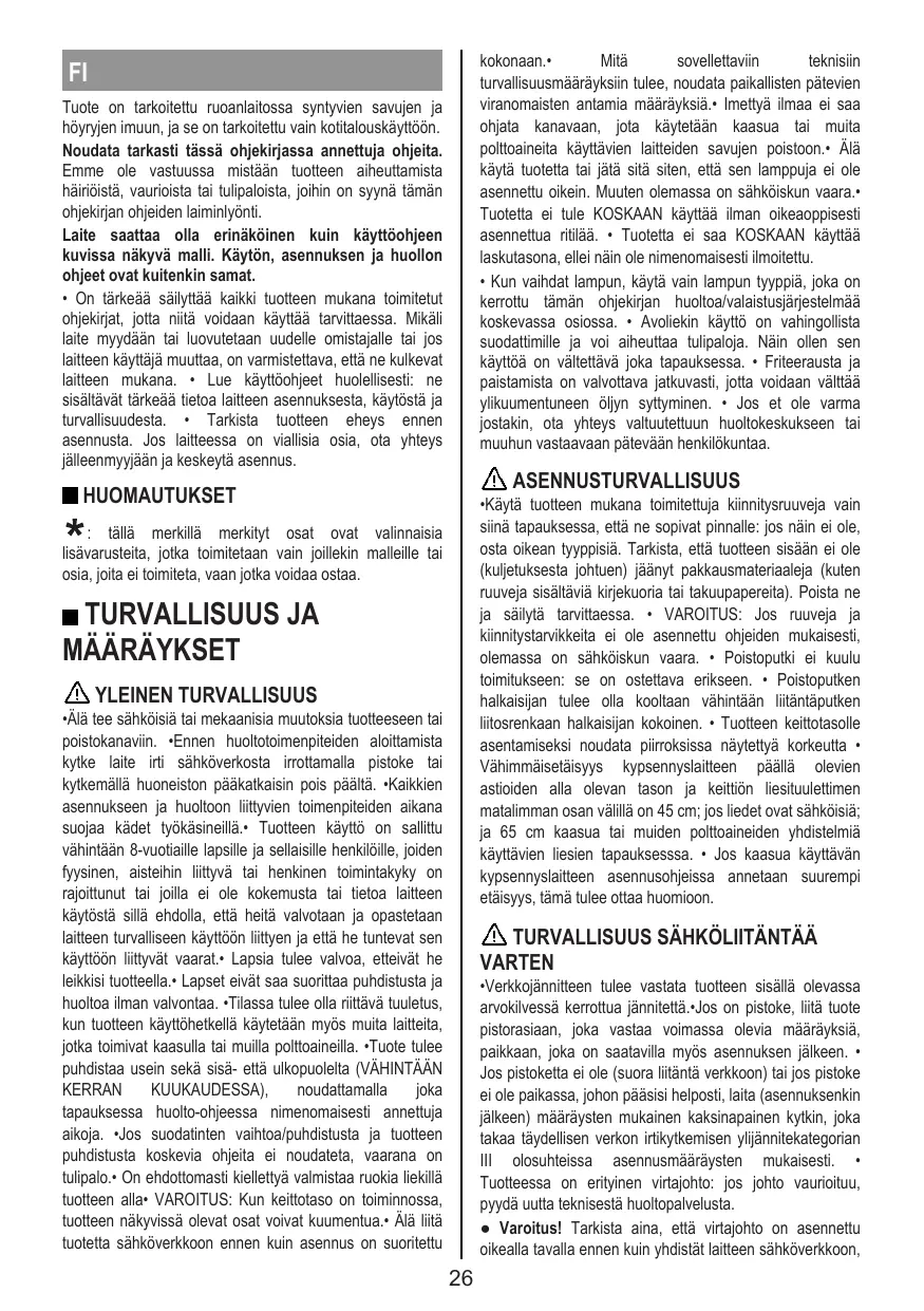 FR Le produit est conçu pour l’aspiration des fumées et des vapeurs de cuisson et est destiné au seul usage domestique.