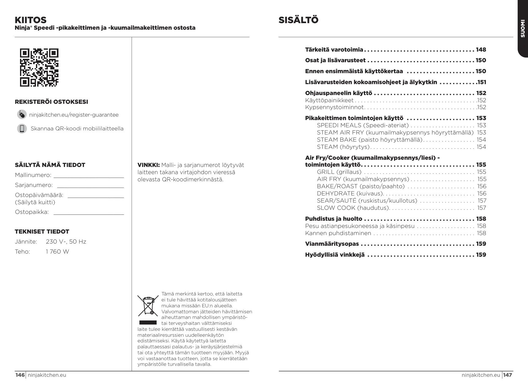 KÄYTTÖOHJE ON400EU Speedi Rapid Cooker & Air fryer NINJA