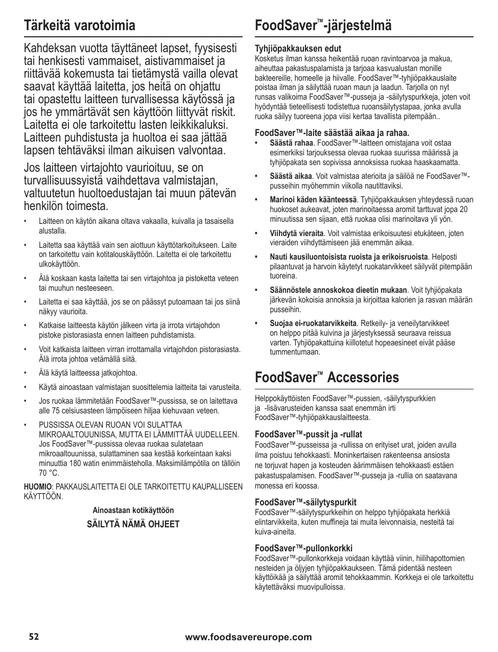 KÄYTTÖOHJE FFS013X FOOD SAVER