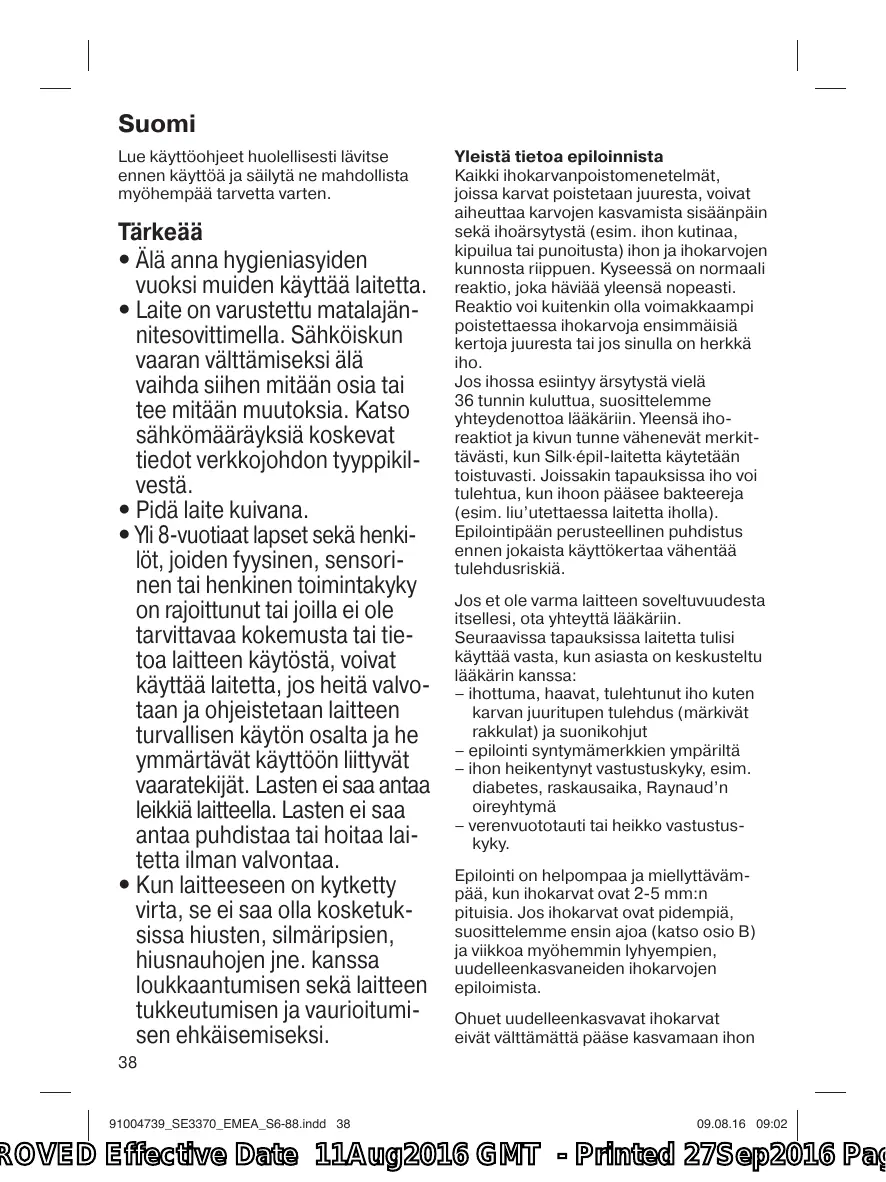 KÄYTTÖOHJE SE3 321 BRAUN
