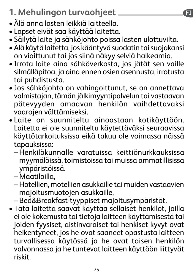 + Cet appareil est exclusivement destiné à un usage domestique. Le fabricant décline toute responsabilité et se réserve le droit de résilier la garantie en cas d'utilisation