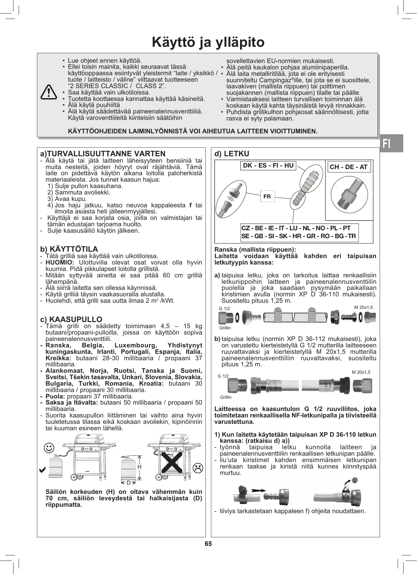 KÄYTTÖOHJE 2 SERIES Classic LX Plus Vario CAMPINGAZ