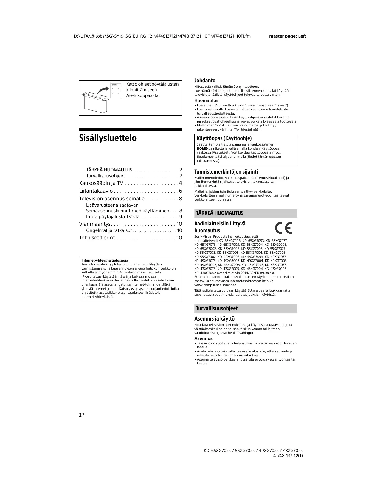 KD-65XG70xx / 55XG7Oxx / 49XG70xx / 43XG70xx