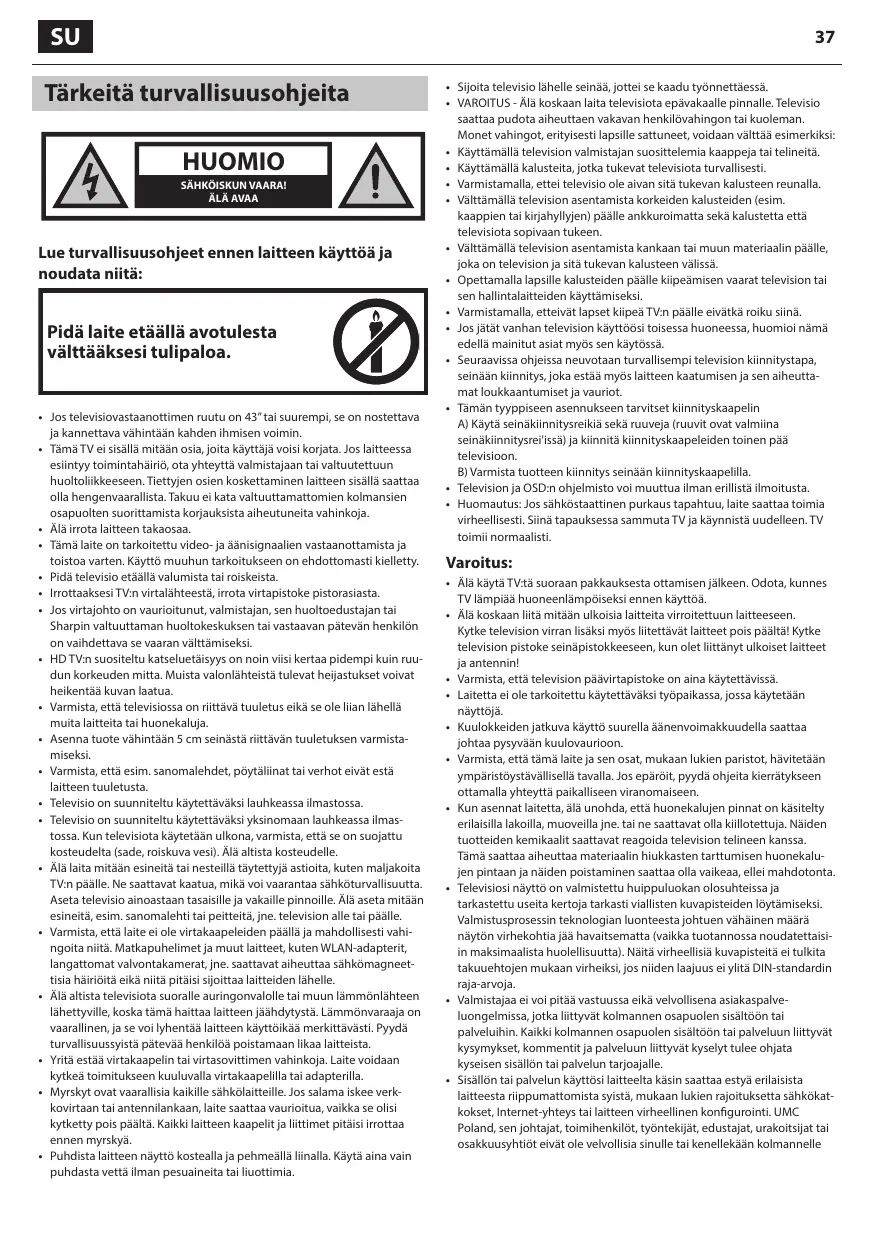 + Parla présente, UMC Poland Sp.z 0.0. déclare que cette TV LED est conforme aux principales exigences et autres clauses pertinentes de la directive RED 2014/53/EU. wvmesharpconsumer.eu/documents-of- conformity!