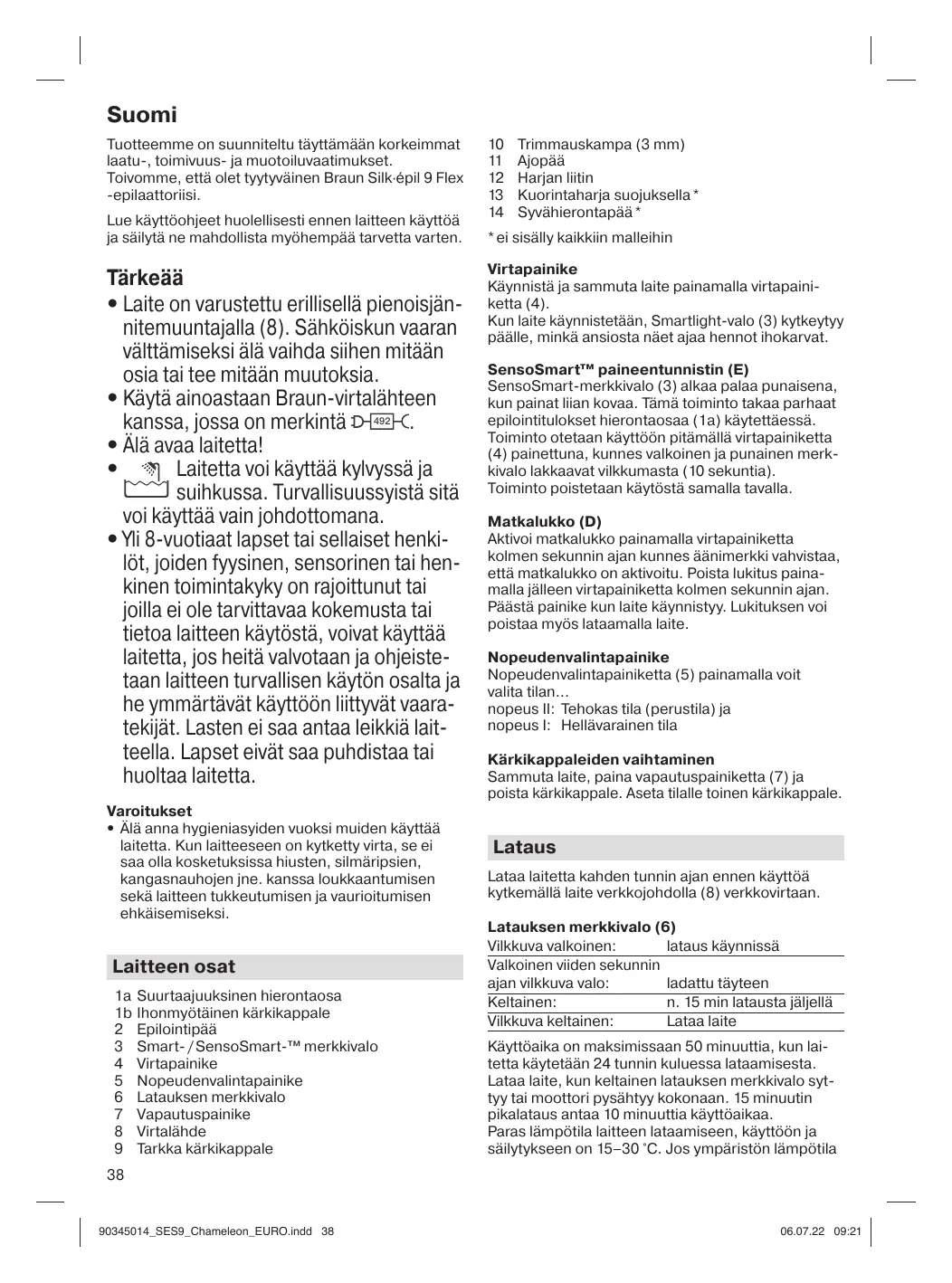 Tuotteemme on suunniteltu täytämään korkeimmat laatu-, toimivuus- ja muotoiluvaatimukset. Toivomme, että olet tyytyväinen Braun Silk-épil 9 Flex -epilaattoriisi.