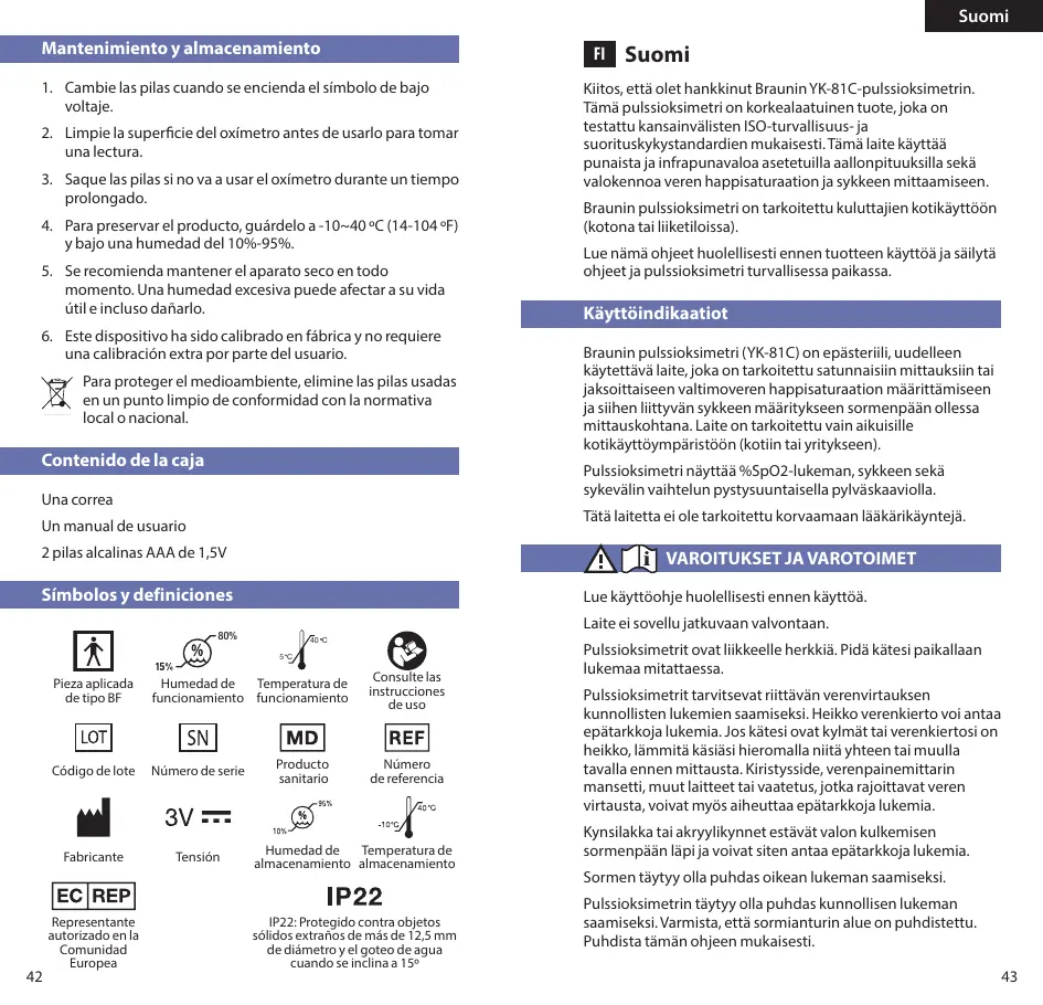 YK-81CEU - Oxymetre de pouls BRAUN - Notice d'utilisation et mode d'emploi gratuit
