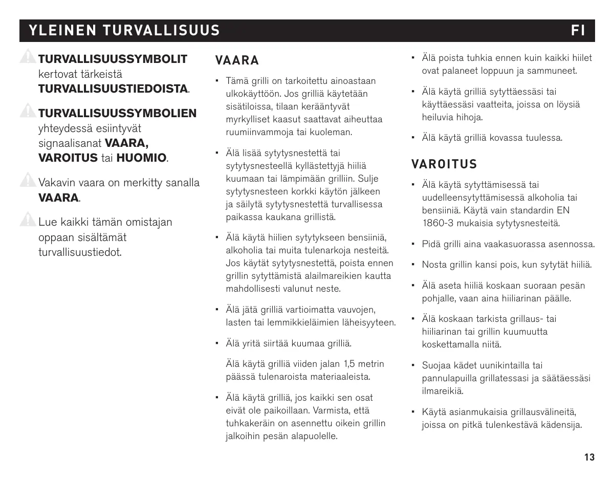 + Ne portez pas de vêtements avec des manches larges et flottantes lors de l'allumage et de l’utilisation du barbecue