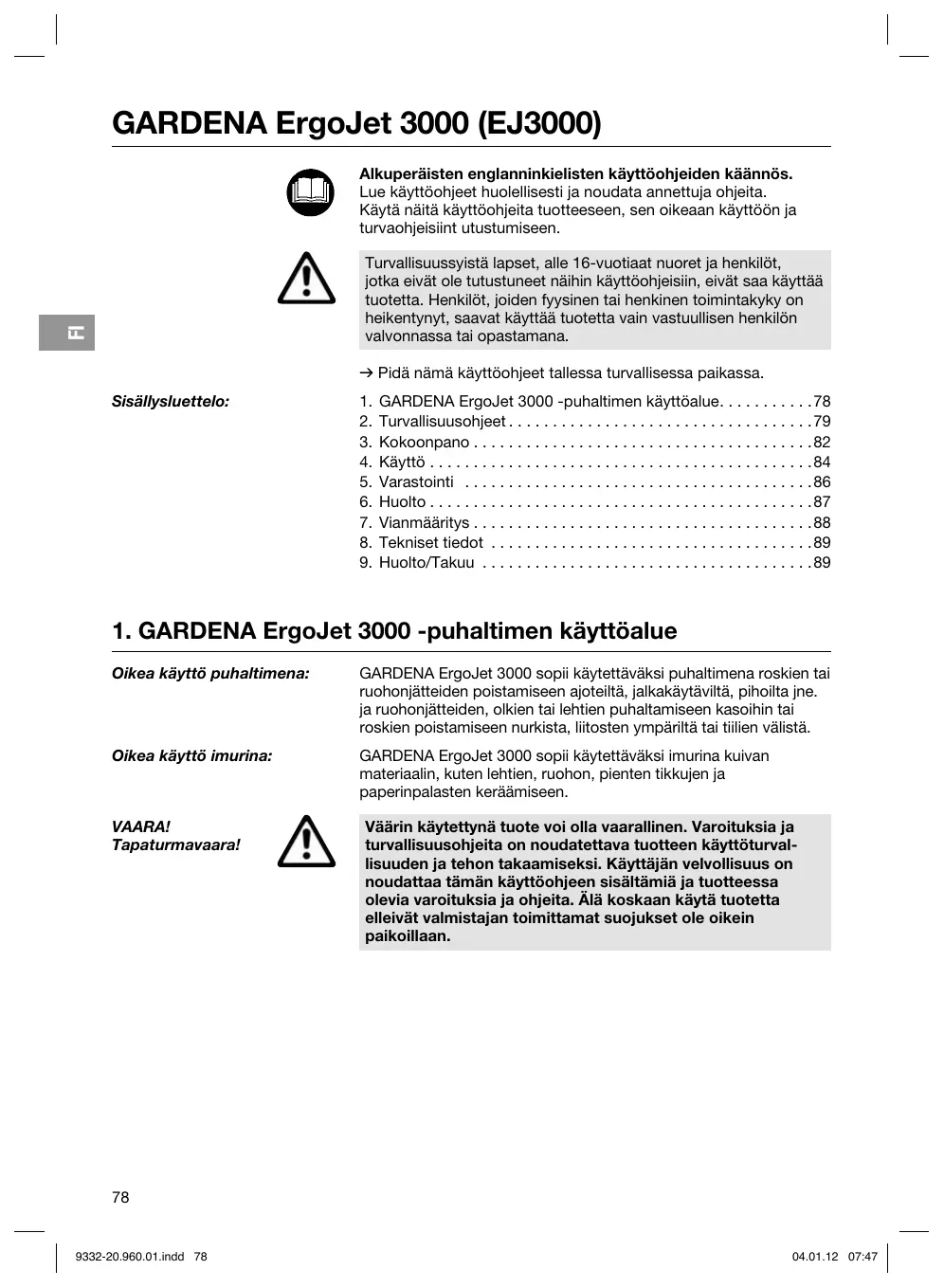KÄYTTÖOHJE Ergojet 3000 GARDENA