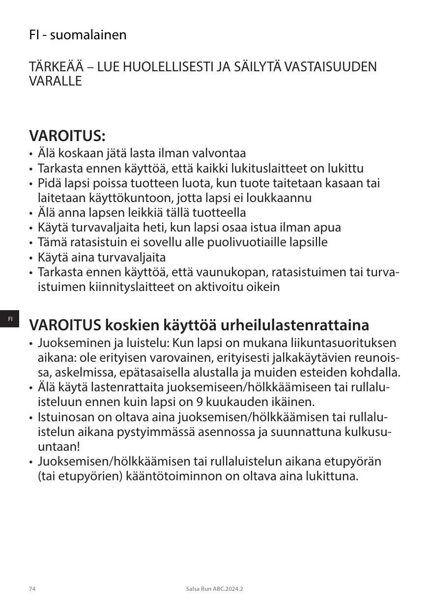 KÄYTTÖOHJE SALSA RUN ABC DESIGN