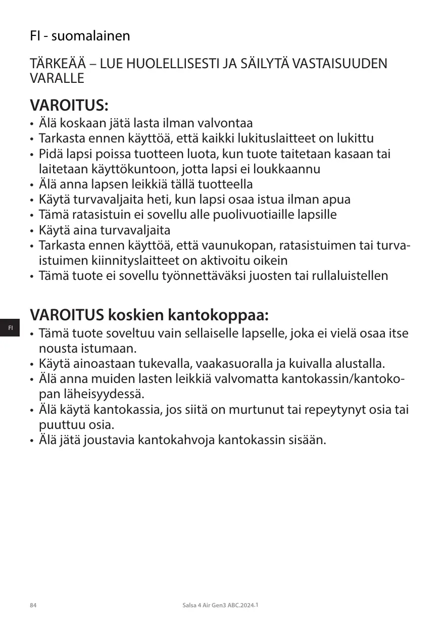 KÄYTTÖOHJE SALSA 4 AIR ABC DESIGN