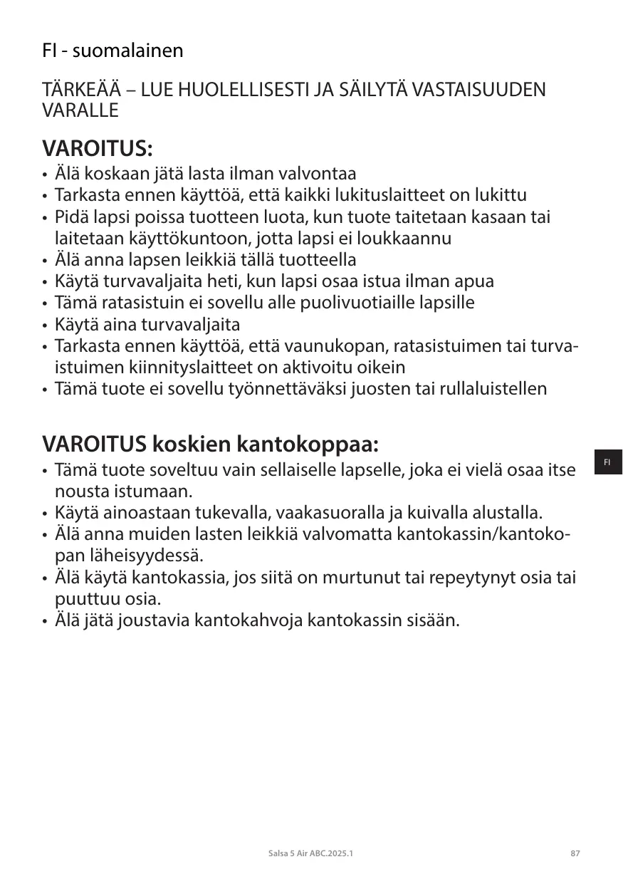KÄYTTÖOHJE SALSA 5 Air avec Siege Auto ABC DESIGN