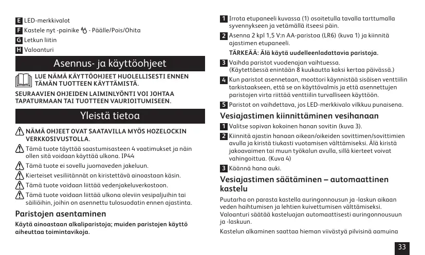 KÄYTTÖOHJE SENSOR, 1 VOIES - 2212 HOZELOCK