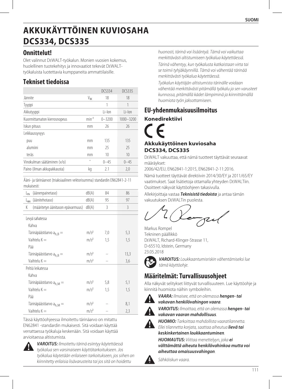 Téléchargez la notice de votre Langaton pistosaha au format PDF gratuitement ! Retrouvez votre notice DCS334NT-XJ - DCS334 - DCS335 - DEWALT et reprennez votre appareil électronique en main. Sur cette page sont publiés tous les documents nécessaires à l'utilisation de votre appareil DCS334NT-XJ - DCS334 - DCS335 de la marque DEWALT.