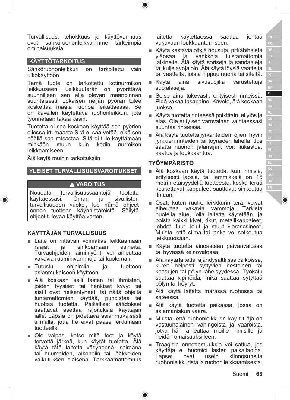 Téléchargez la notice de votre Sähköruohonleikkuri au format PDF gratuitement ! Retrouvez votre notice RLM4018 - RYOBI et reprennez votre appareil électronique en main. Sur cette page sont publiés tous les documents nécessaires à l'utilisation de votre appareil RLM4018 de la marque RYOBI.