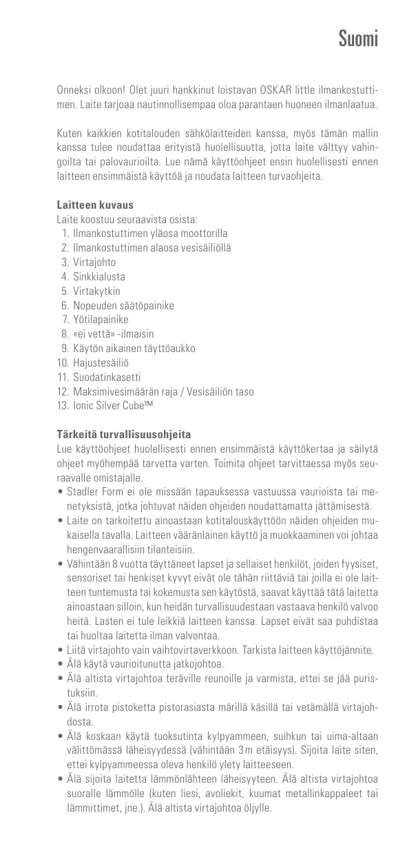 OSKAR LITTLE TITANIUM - Ilmankostutin STADLERFORM - Ilmainen käyttöohje ja opas