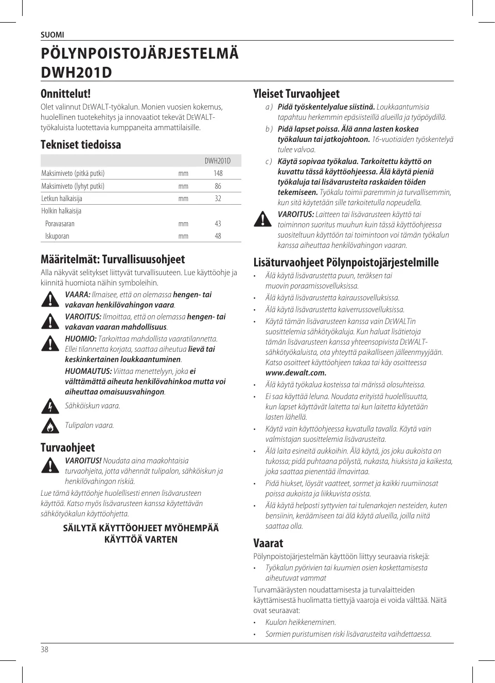 KÄYTTÖOHJE DWH201D-XJ DEWALT