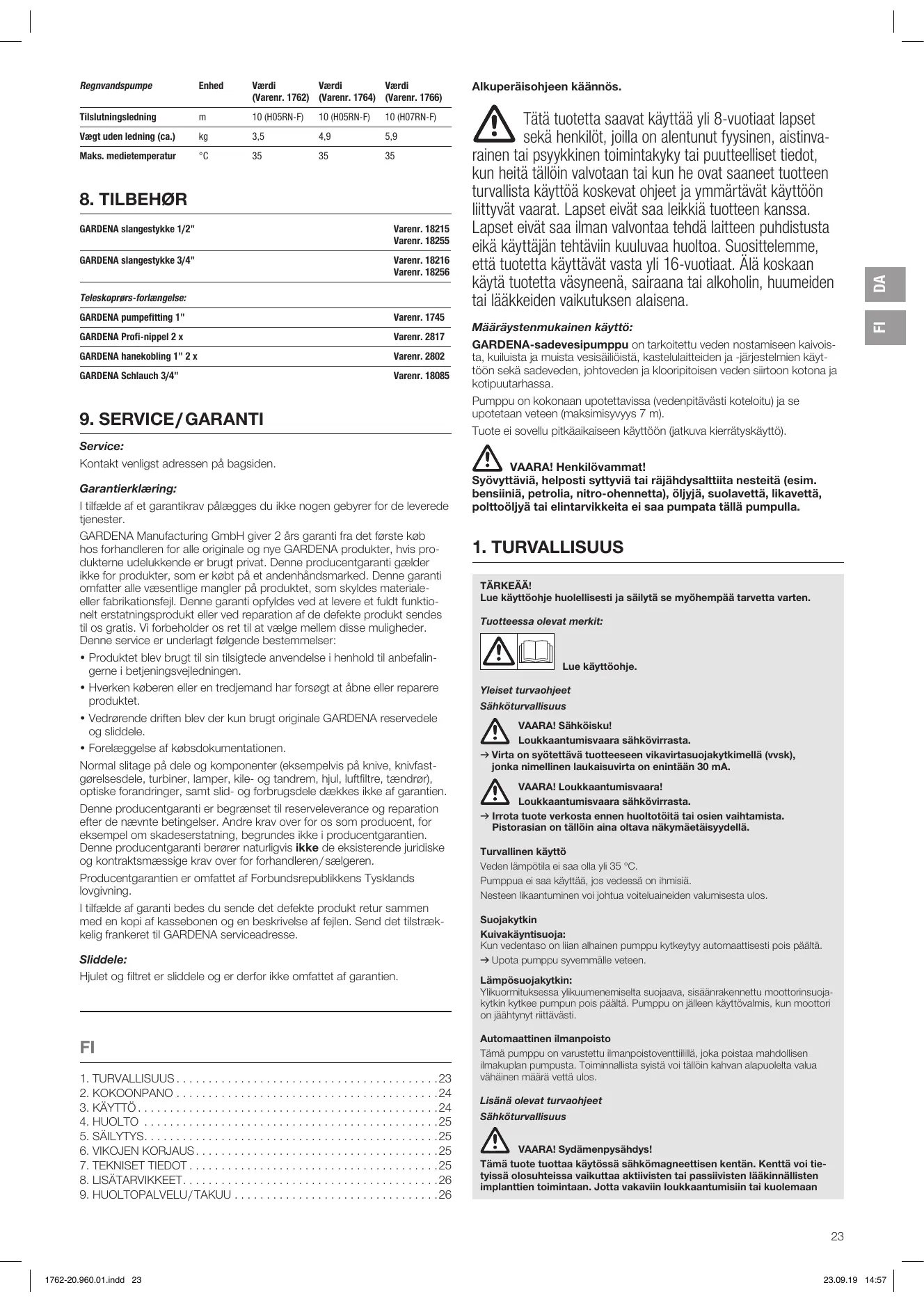 KÄYTTÖOHJE 1764 - 1766 GARDENA