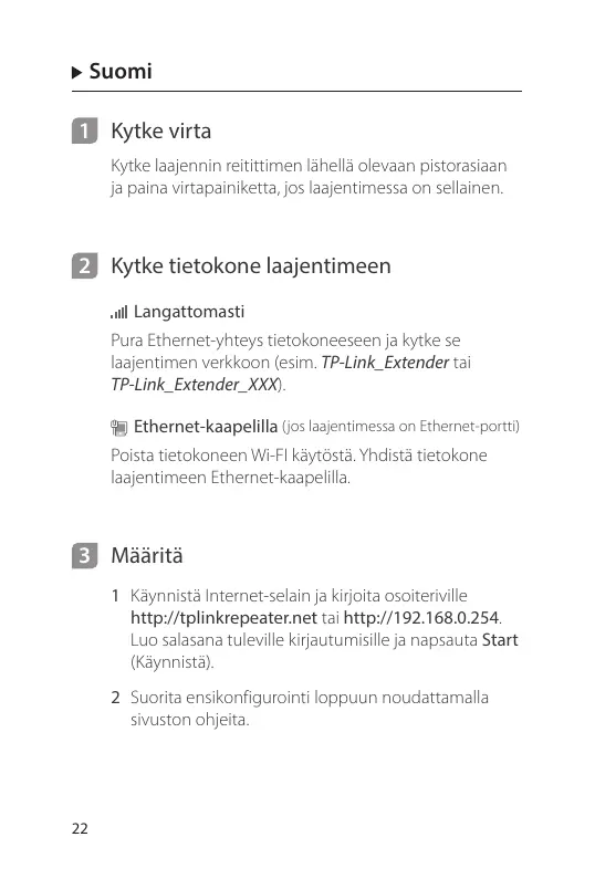 KÄYTTÖOHJE Wi-Fi Range Extender TP-LINK