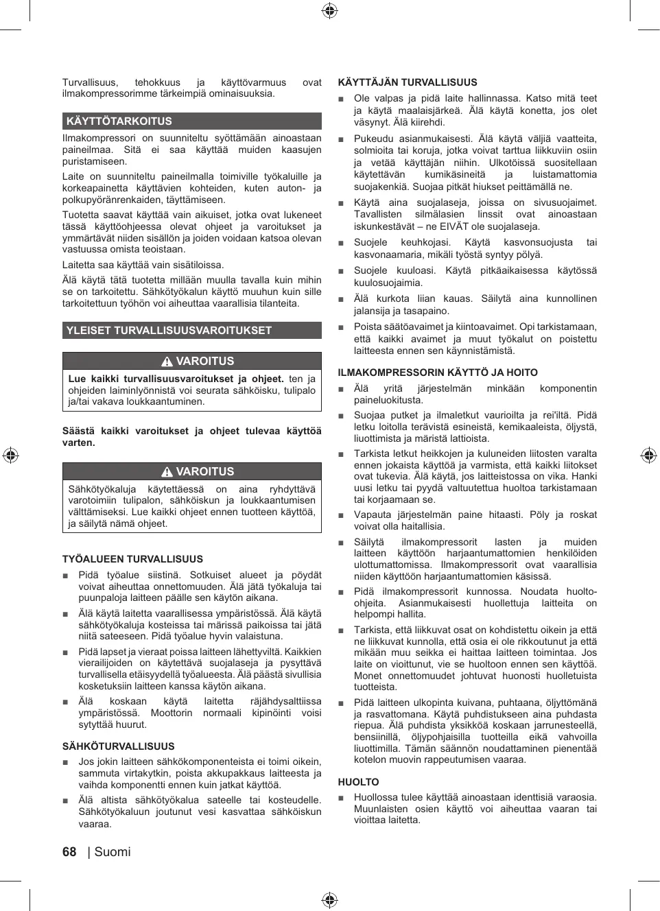 Inadeguatezza per la respirazione. L'aria prodotta direttamente dal compressore ad aria non dovrebbe mai essere utlizzata per la respirazione umana.