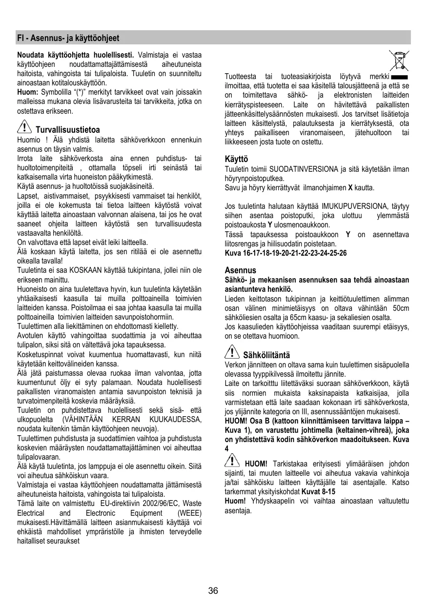 KÄYTTÖOHJE GIOIA WH/F/50 TURBOAIR