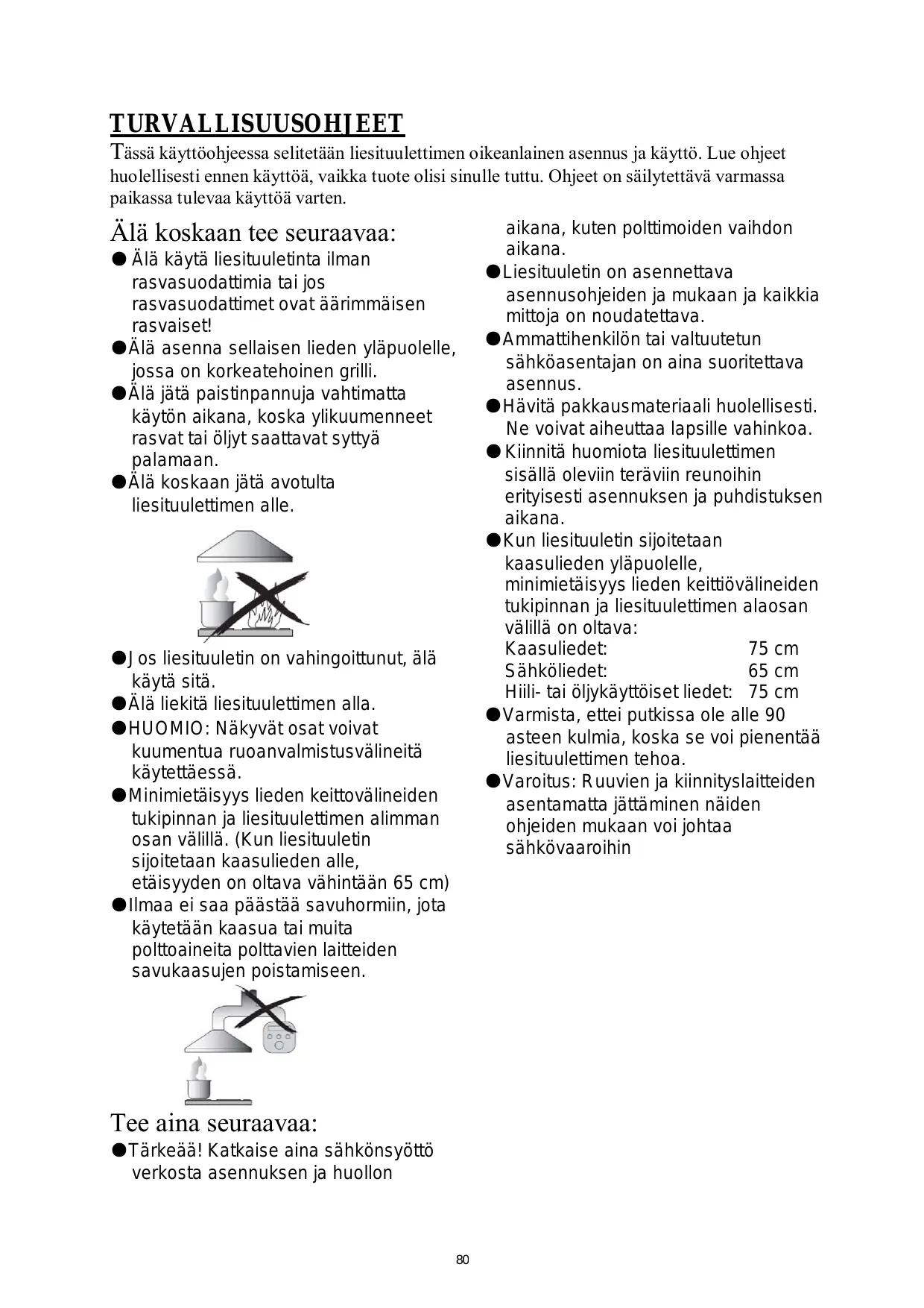 @Quand la hotte aspirante et les appareils alimentés par autre chose que de l'électricité fonctionnent simultanément, la pression négative à l'intérieur de la pièce ne doit pas dépasser 4 Pa (4 x 10-5 bar).