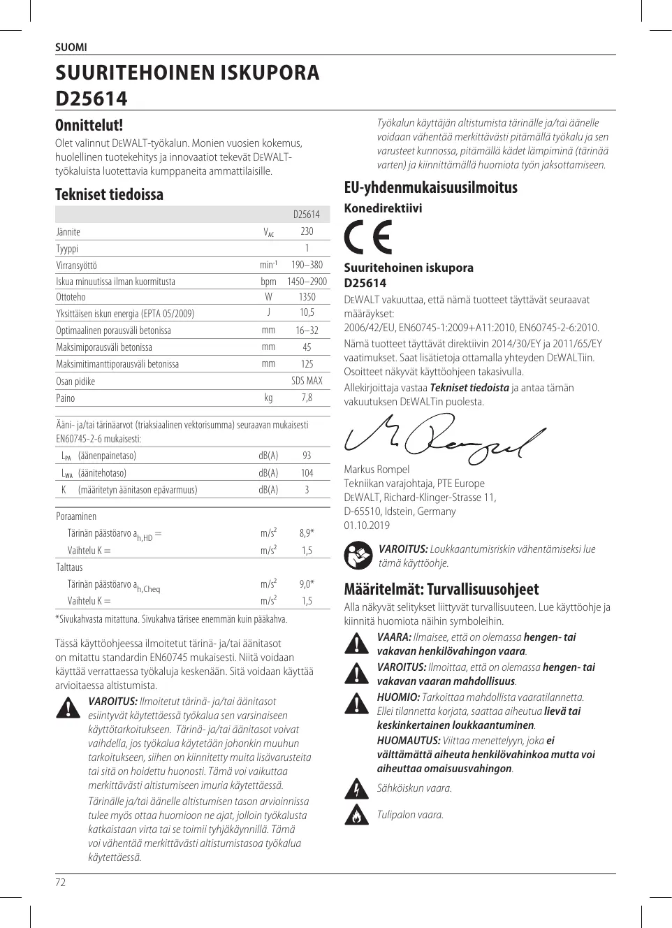 Le soussigné est responsable de la compilation du fichier technique et fait cette déclaration au nom de DEWALT.