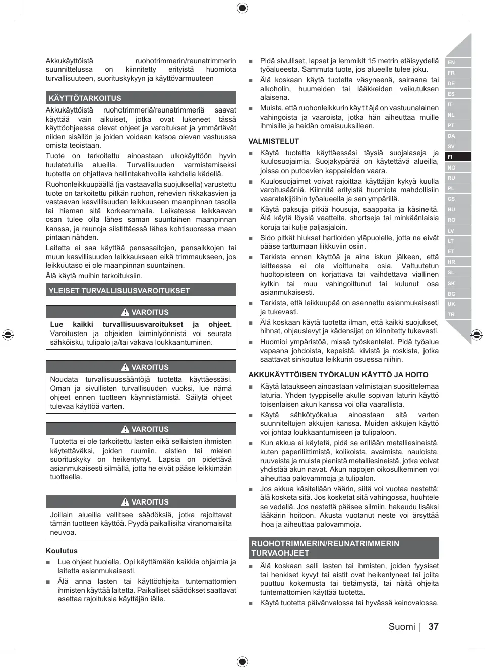 DE SÉCURITÉ CONCERNANT AZON/COUPE-BORDURE Ne laissez jamais les enfants, les personnes aux capacités physiques, sensorielles ou mentales réduites ou n'ayant pas l'habitude ou les connaissances suffisantes, ni les personnes non familiarisées avec ces instructions utiliser ce produit