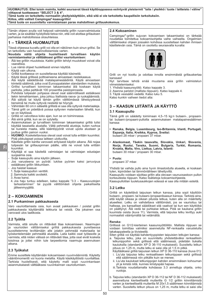 KÄYTTÖOHJE SELECT 3 LX PLUS CAMPINGAZ