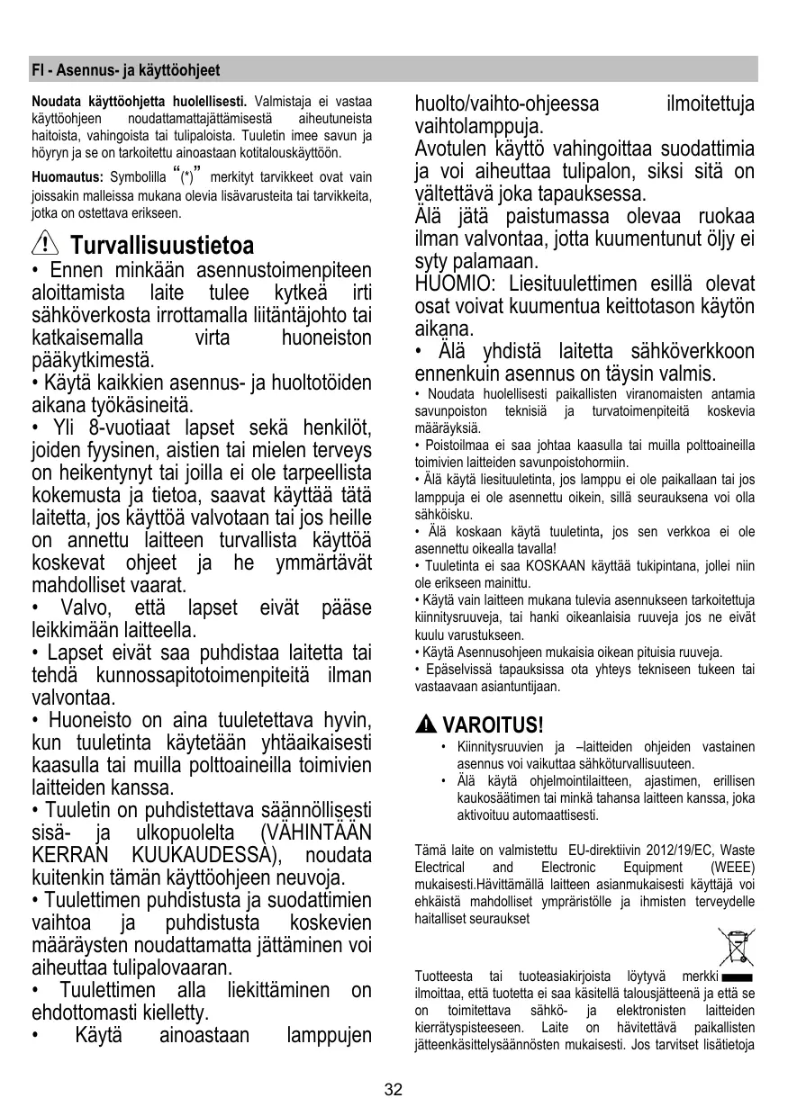 KÄYTTÖOHJE MORAN BL/F/60 TURBOAIR