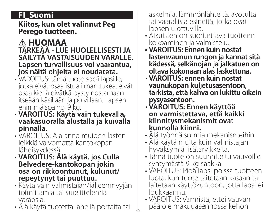 Téléchargez la notice de votre Lastenrattaat au format PDF gratuitement ! Retrouvez votre notice Culla Belvedere - PEG PEREGO et reprennez votre appareil électronique en main. Sur cette page sont publiés tous les documents nécessaires à l'utilisation de votre appareil Culla Belvedere de la marque PEG PEREGO.