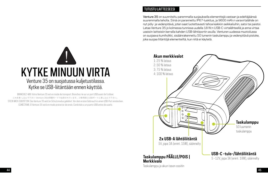 Le Venture 35 est conçu avec une protection accrue contre les éléments et plus de puissance que son prédécesseur. Équipée d'un indice de protection IP67 amélioré, la batterie externe