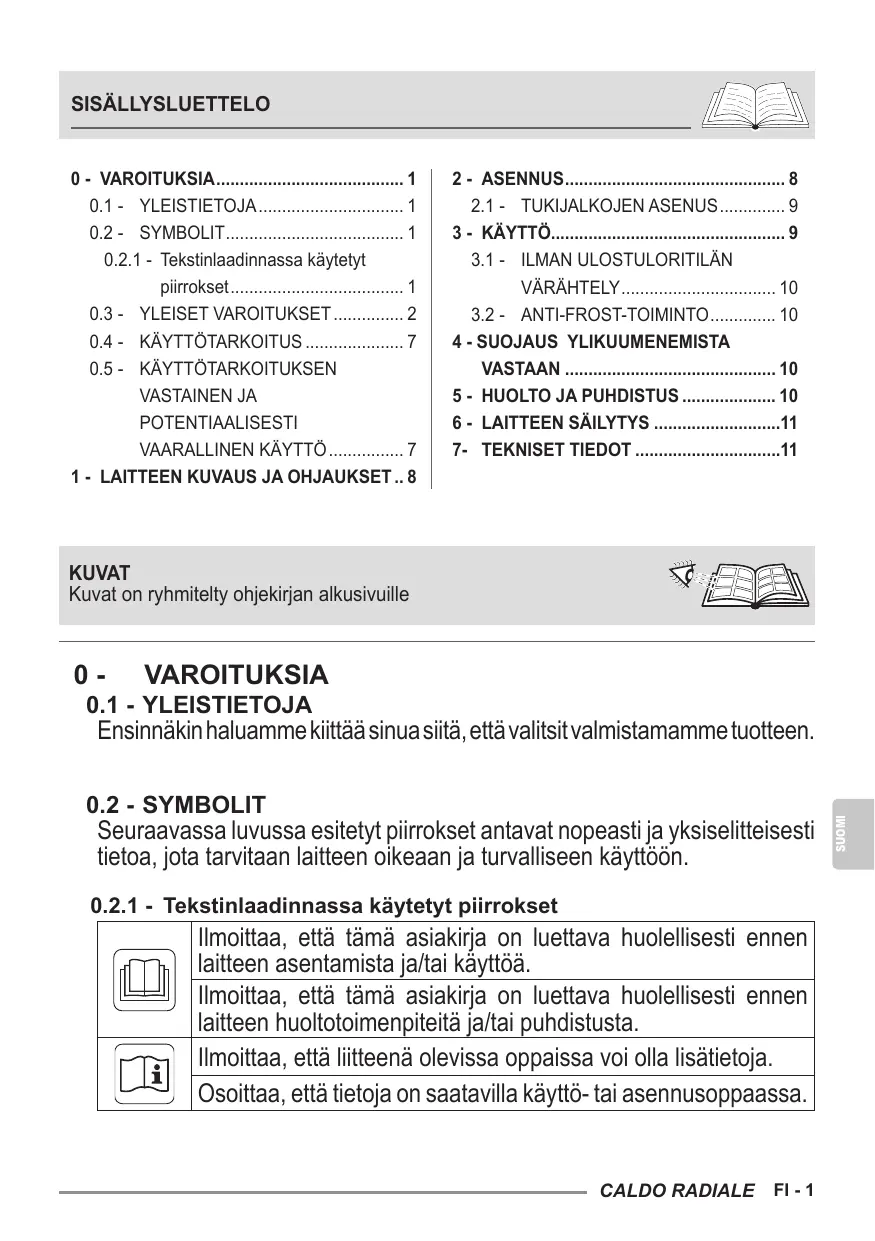 KÄYTTÖOHJE SOUFFLANT CALDO RADIALE OLIMPIA SPLENDID