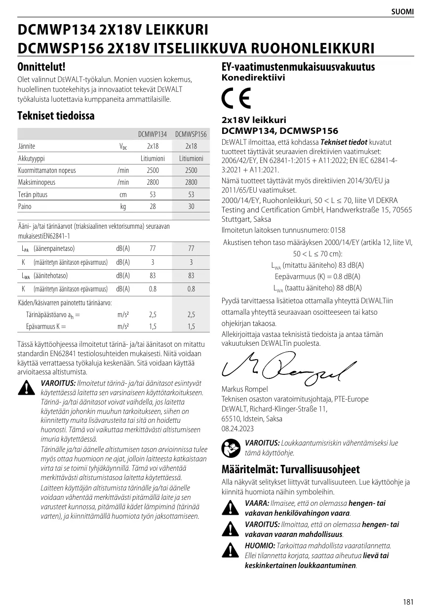 KÄYTTÖOHJE DCMWP134 - DCMWSP156 DEWALT