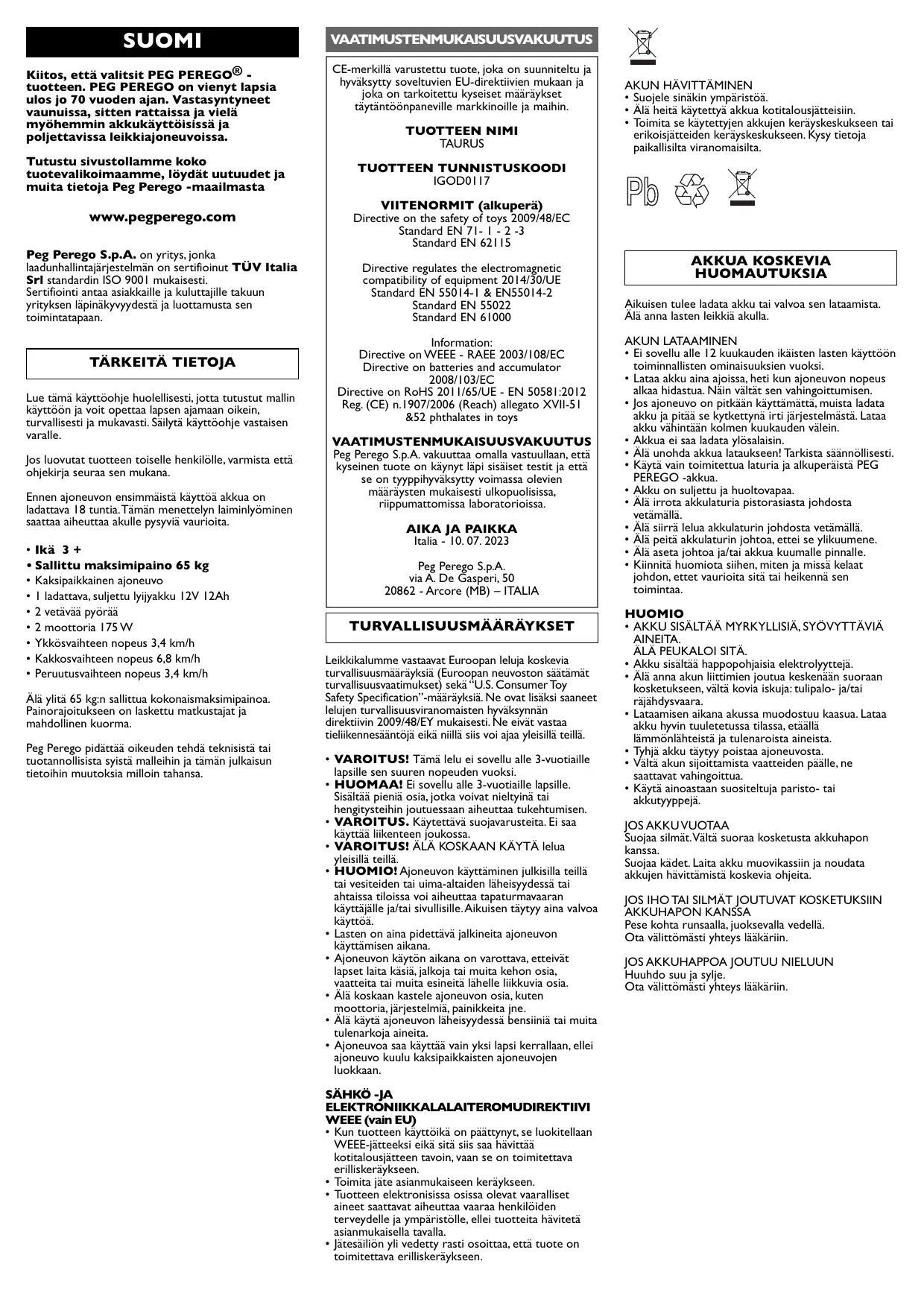 KÄYTTÖOHJE Taurus PEG PEREGO