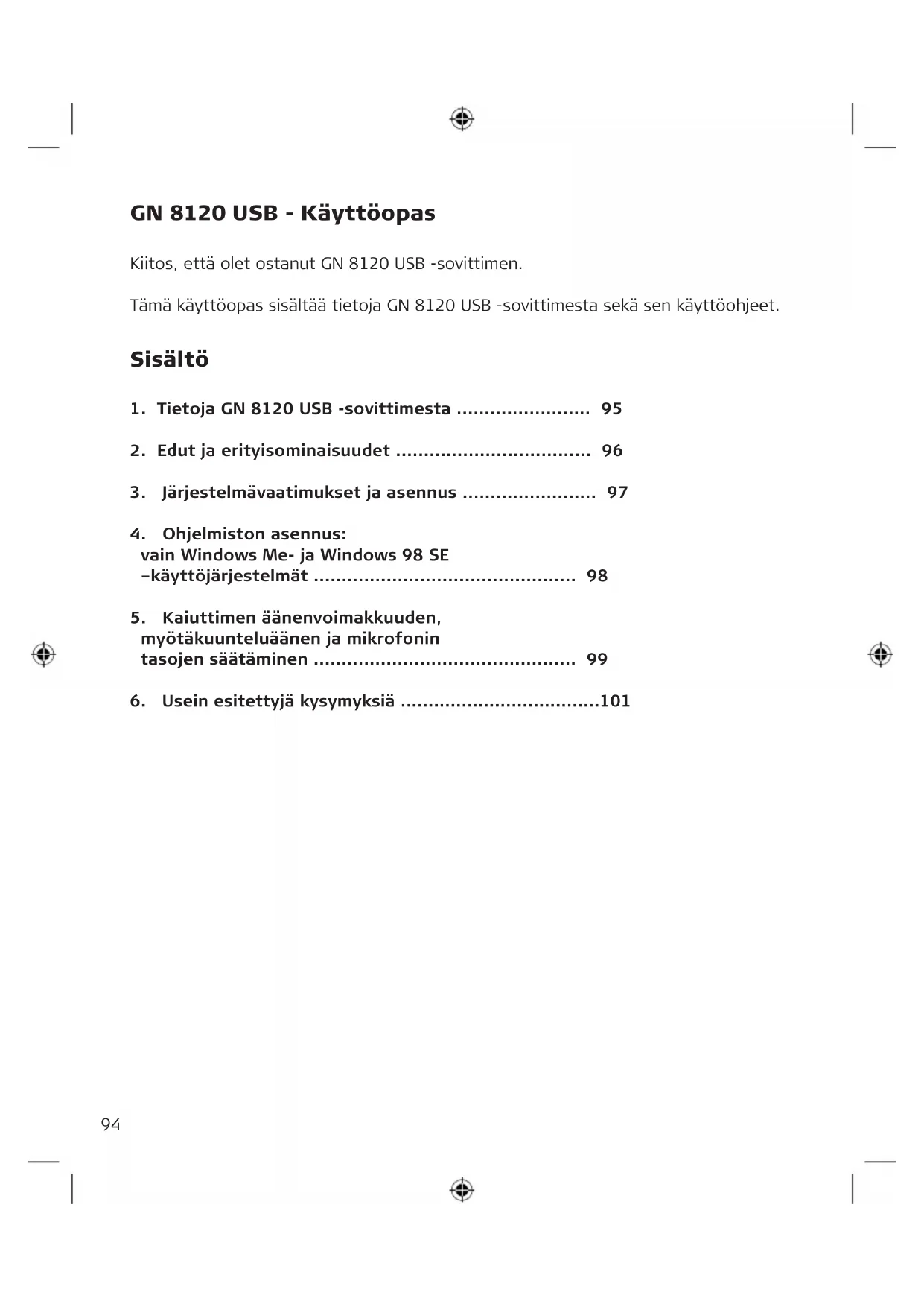 1. Tietoja GN 8120 USB -sovittimesta 95