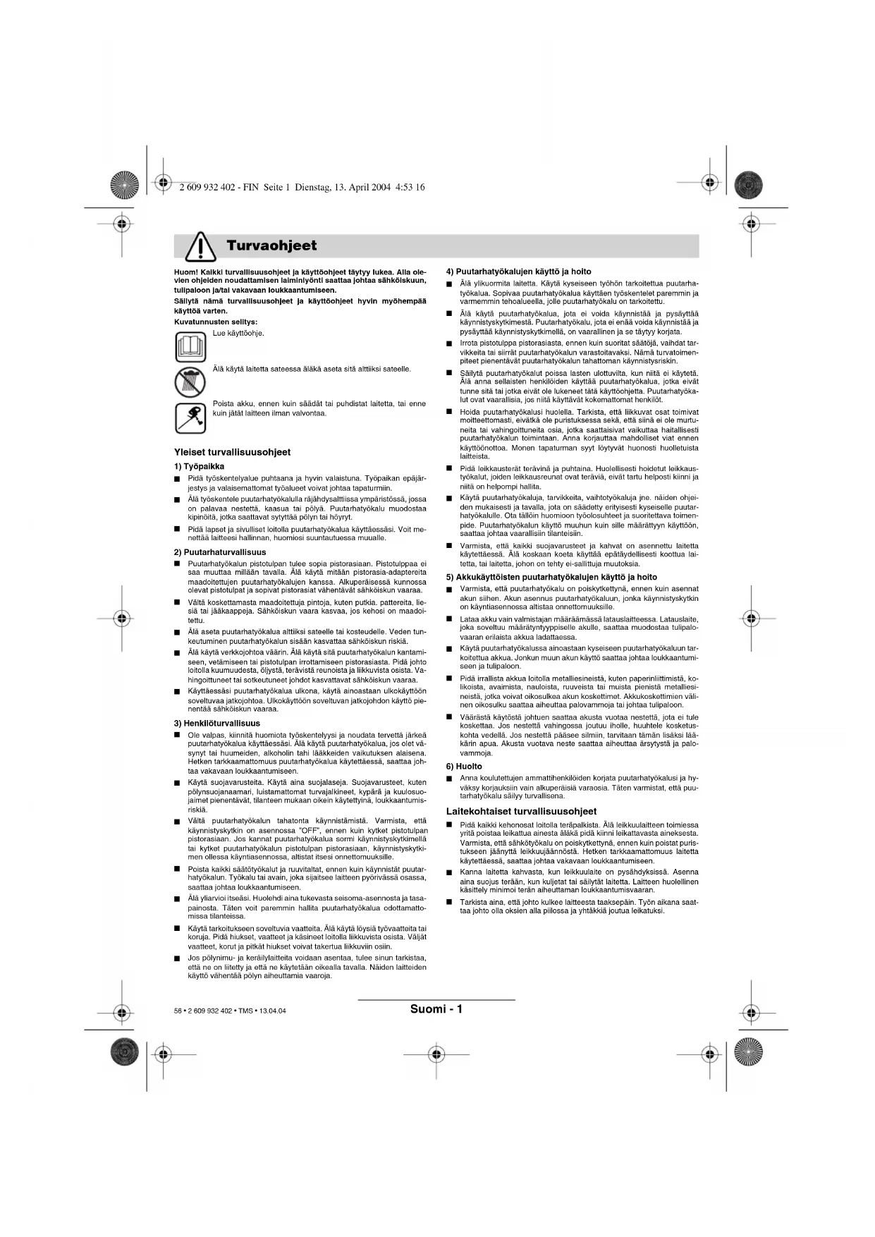 2 609 932 402 - FIN Seite 1 Dienstag, 13. April 2004 4:53 16 56 • 2 609 932 402 • TMS • 13.04.04Suomi - 2
