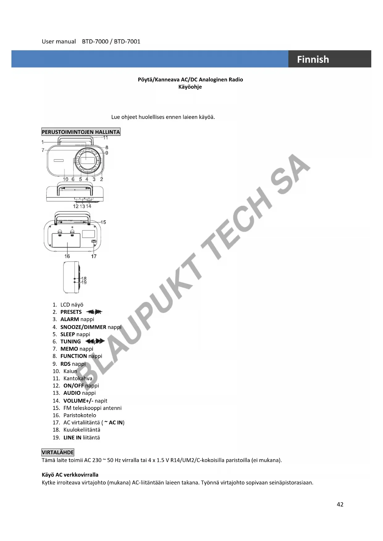 KÄYTTÖOHJE BTD7001 BLAUPUNKT