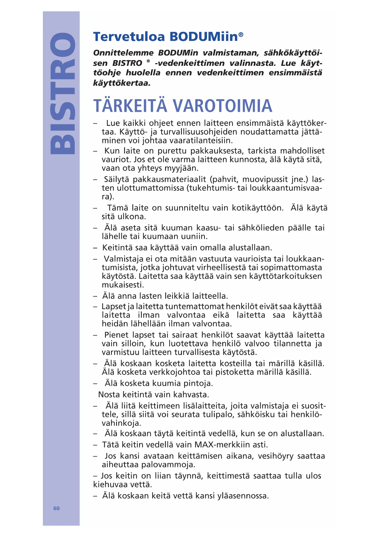 Onnittelemme BODUMin valmistaman, sähkökäyttöi- sen BISTRO
