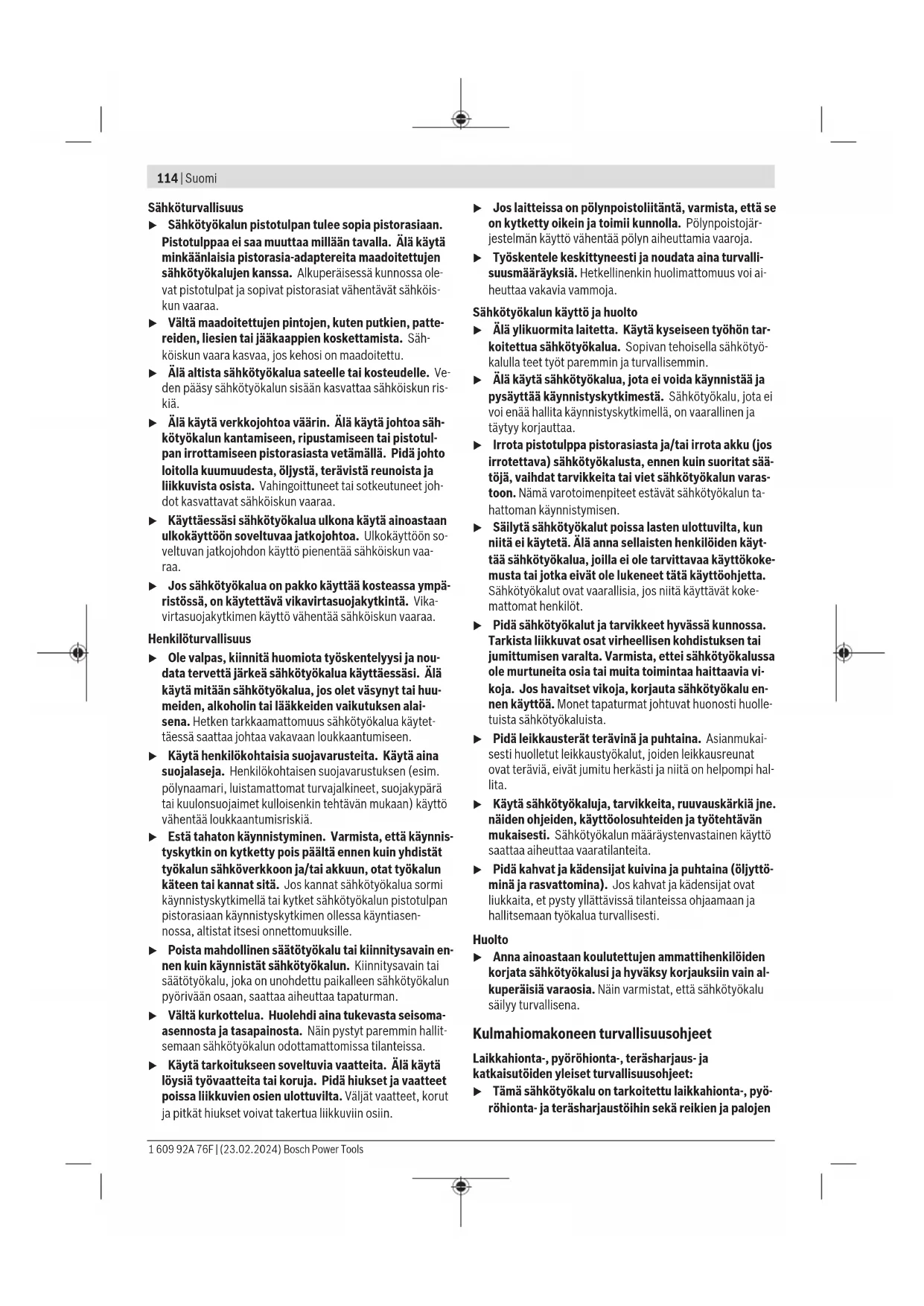 huomiosi muualle. Bosch Power Tools 1 609 92A 76F | (23.02.2024)114 | Suomi