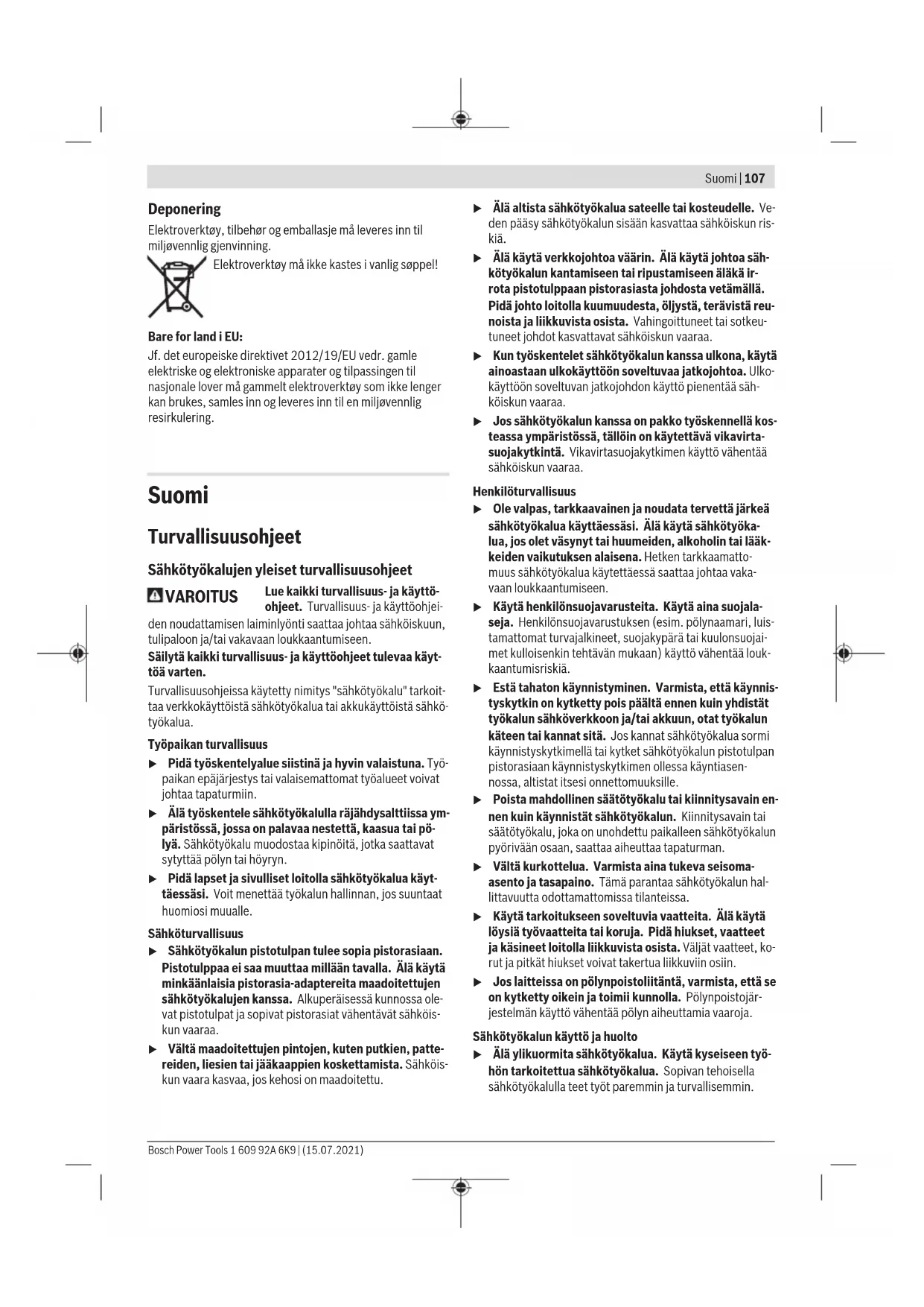 sähkötyökalulla teet työt paremmin ja turvallisemmin. Bosch Power Tools 1 609 92A 6K9 | (15.07.2021)108 | Suomi