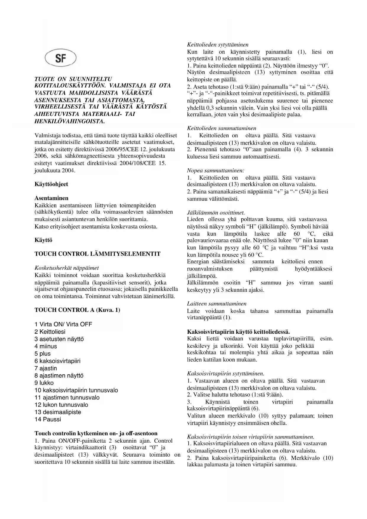 TOUCH CONTROL LÄMMITYSELEMENTIT Kosketusherkät näppäimet