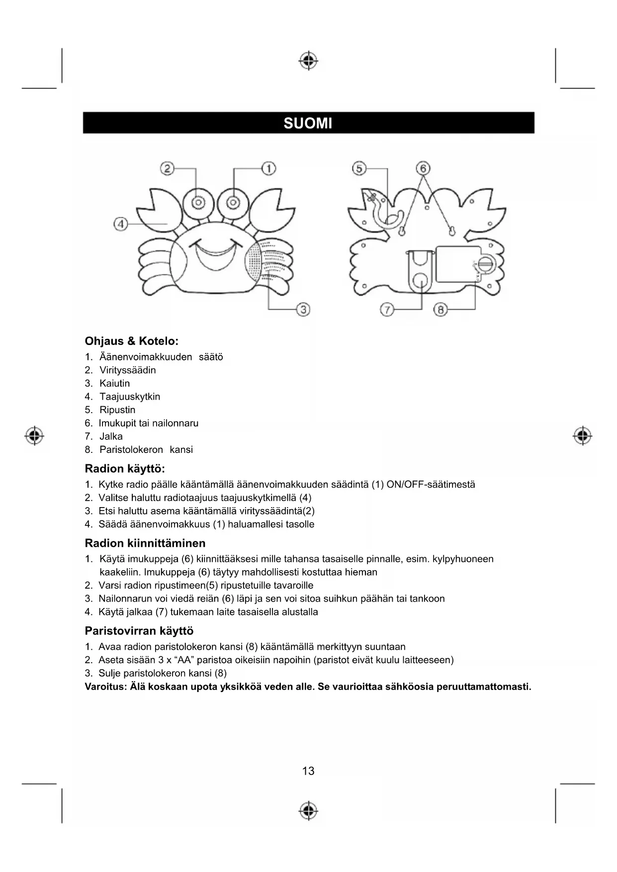- Avaa radion paristolokeron kansi (8) kaantamalla merkittyyn suuntaan