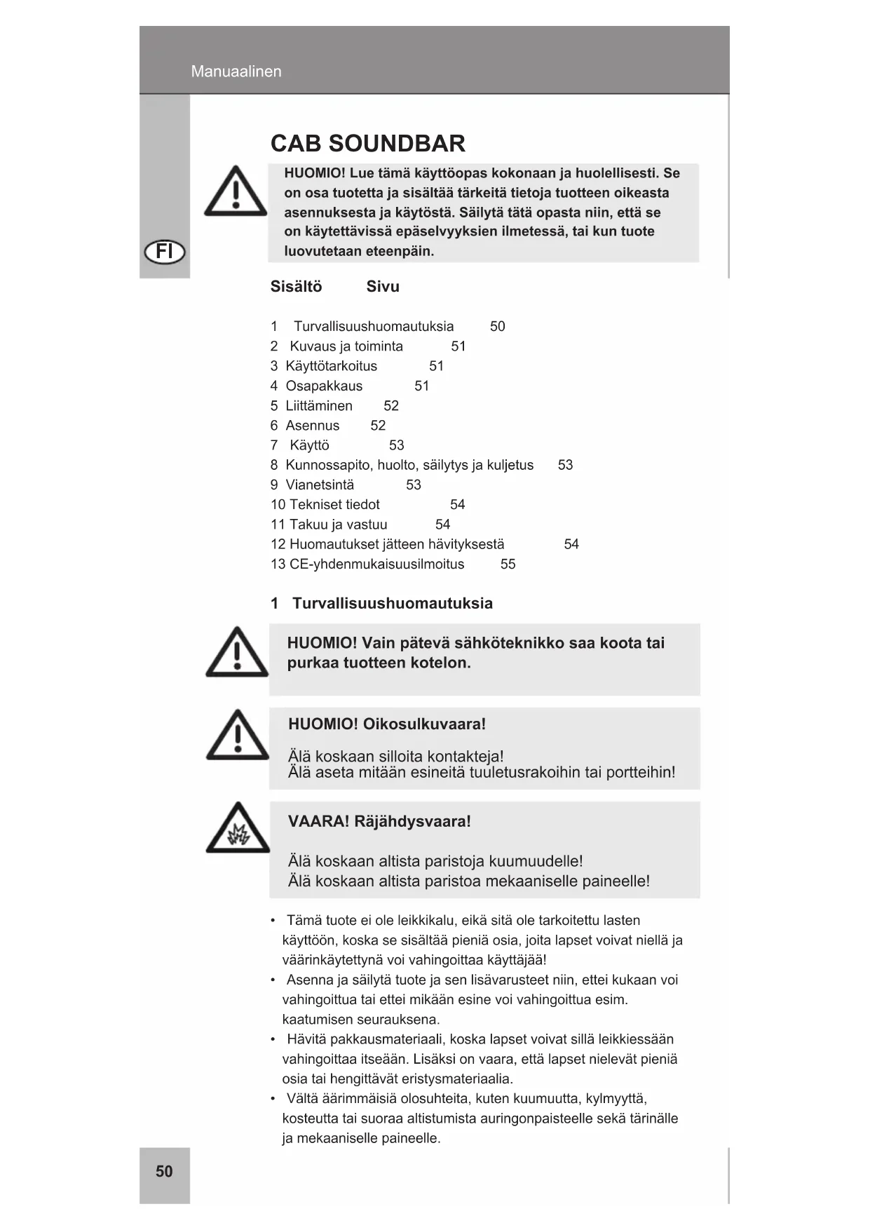 1 Turvallisuushuomautuksia 50