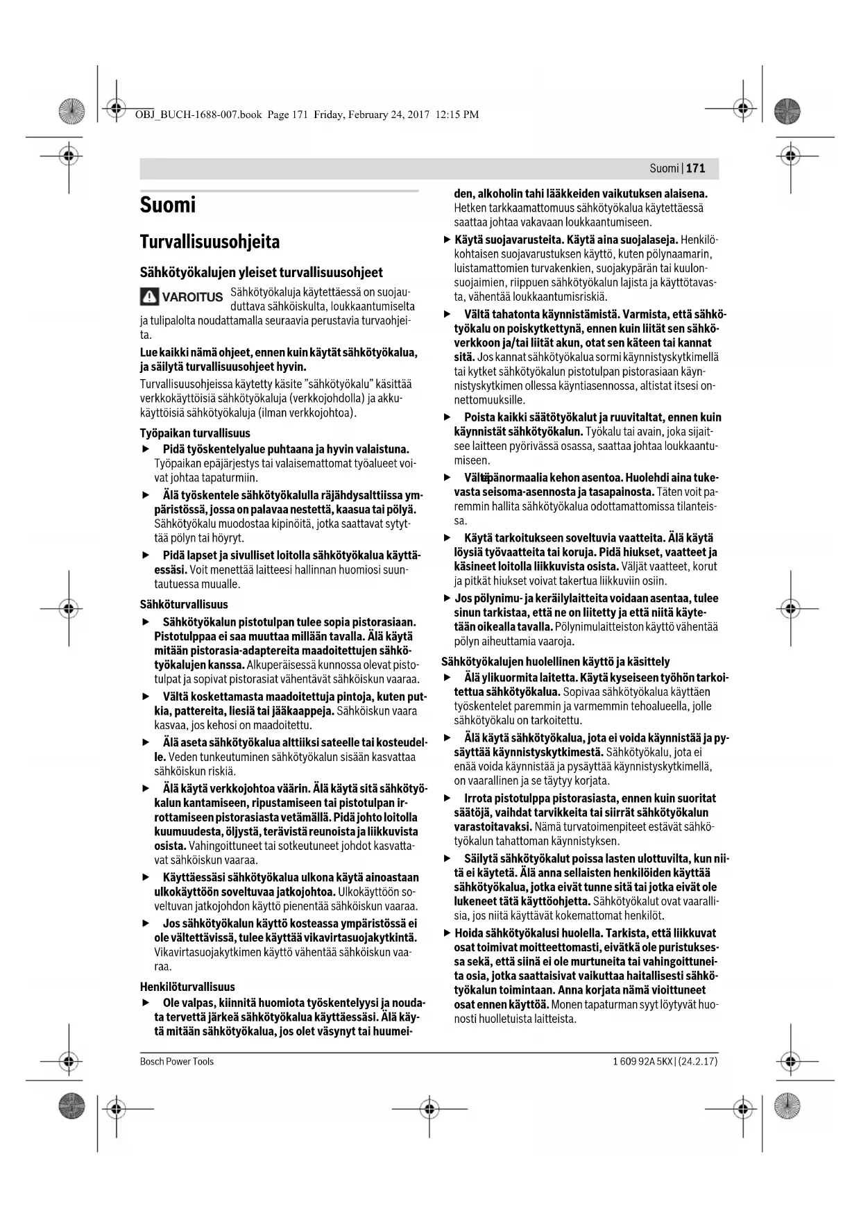 lukeneet tätä käyttöohjetta. Sähkötyökalut ovat vaaralli-